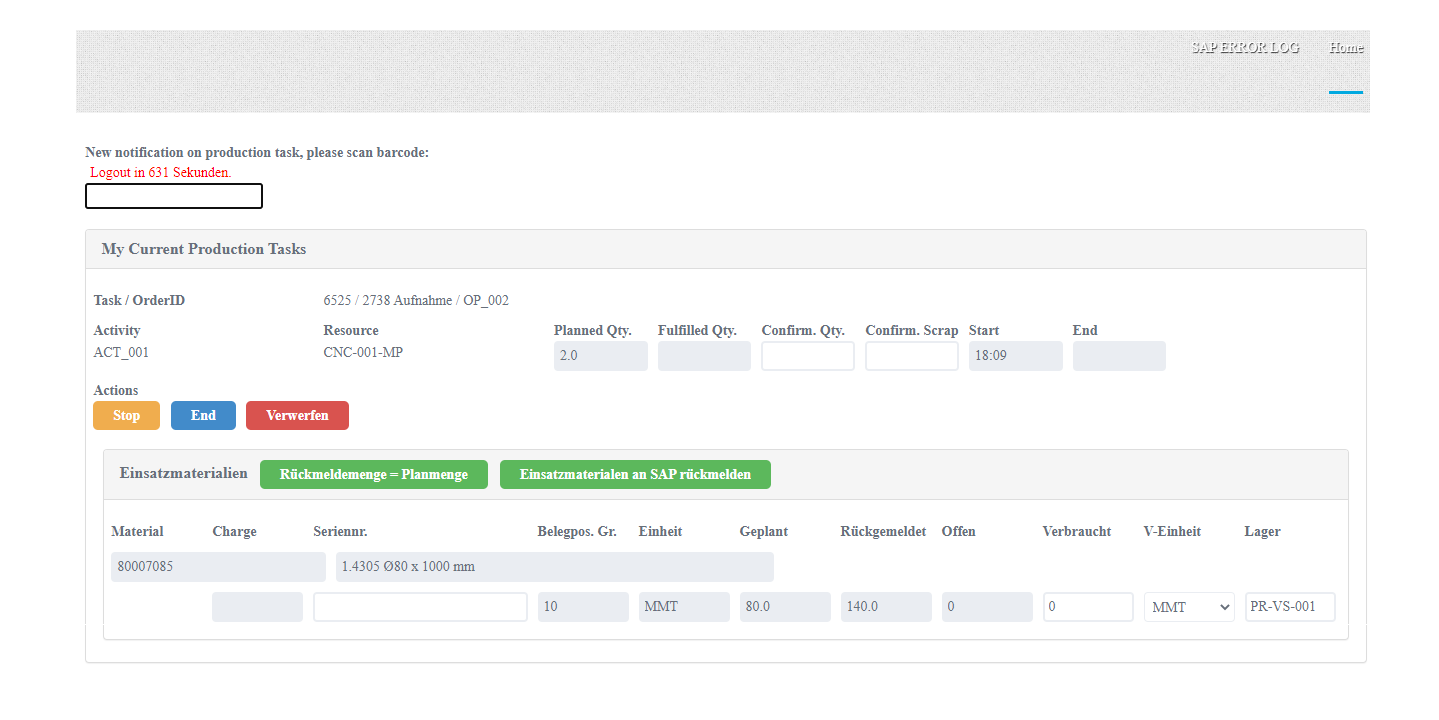 Times and item quantities can be directly recorded from the various different production tasks. Bookings can be recorded via a terminal, browser or tablet. A wide range of different customer scenarios for production data recording can be implemented.