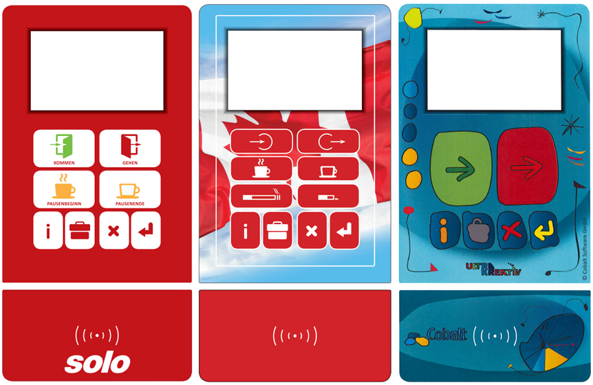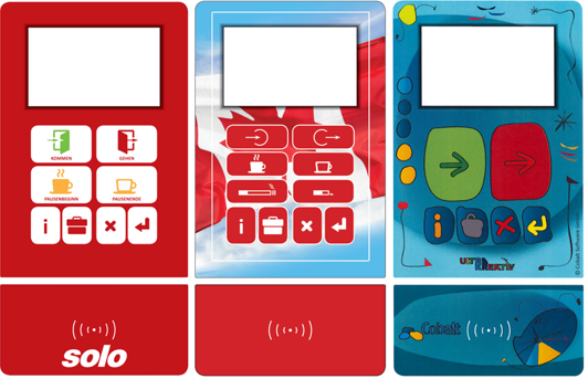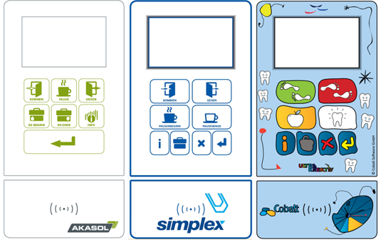 Datafox Terminals offers maximum flexibility. It is equally suitable for recording attendance times and also for recording job times and operational data. Access control components are also available. Noteworthy of mention is that customer-specific keyboard layouts and front panel designs are possible for these devices. The following overview shows some variants: