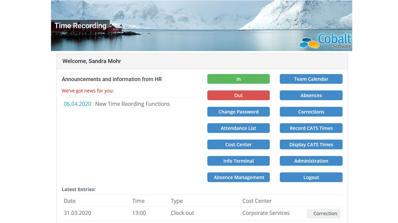The Chronos Time Recording System can be operated with various different time recording terminals. Recording of time-based events such as "Come", "Go", "Break" and "Away on business" and immediate transfer of these events to SAP Business ByDesign can be implemented with a standard installation.