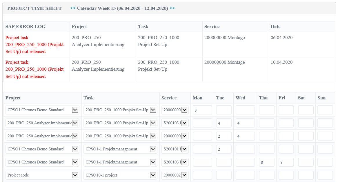 Project times can be quickly and easily displayed in a weekly overview and booked against projects, tasks and services defined in the SAP BusinessByDesign environment. Other recording variants such as (e.g.) employee-specific start-stop functions or special recording forms for team leaders are also possible.