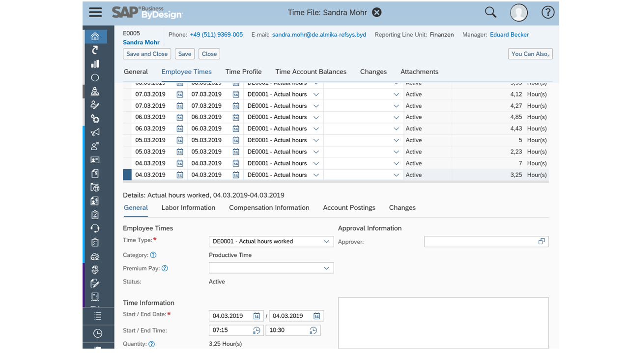 Time recording for SAP Business ByDesign