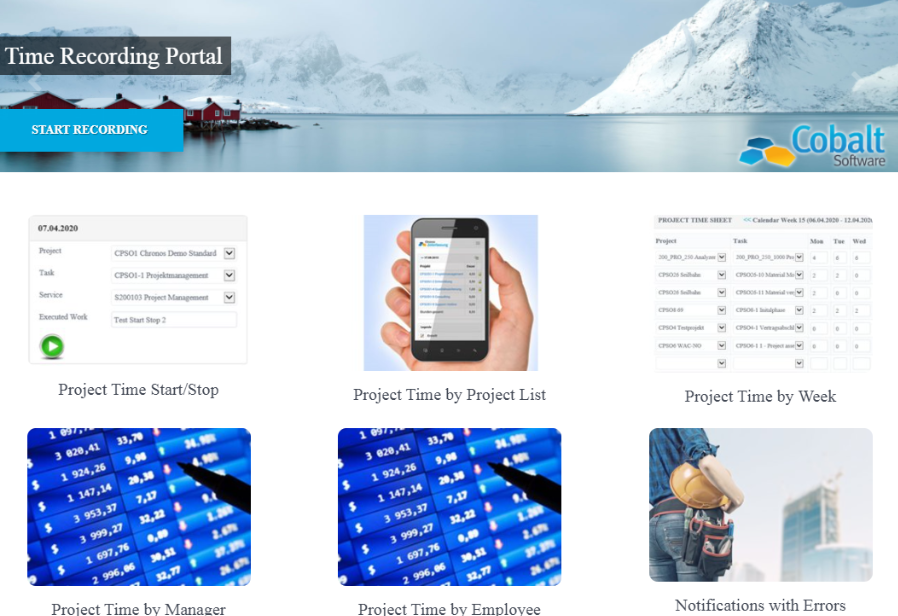 The Chronos Time Recording Portal for SAP BusinessByDesign can implement a wide range of application cases and customer requirements. The portal can be accessed using tablets, smartphones or browsers.
