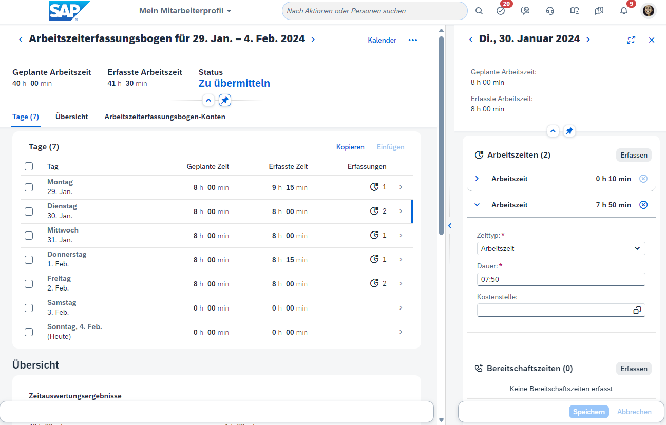 Ob Zeiterfassungsbuchungen an SAP ERP HCM übertragen werden sollen...